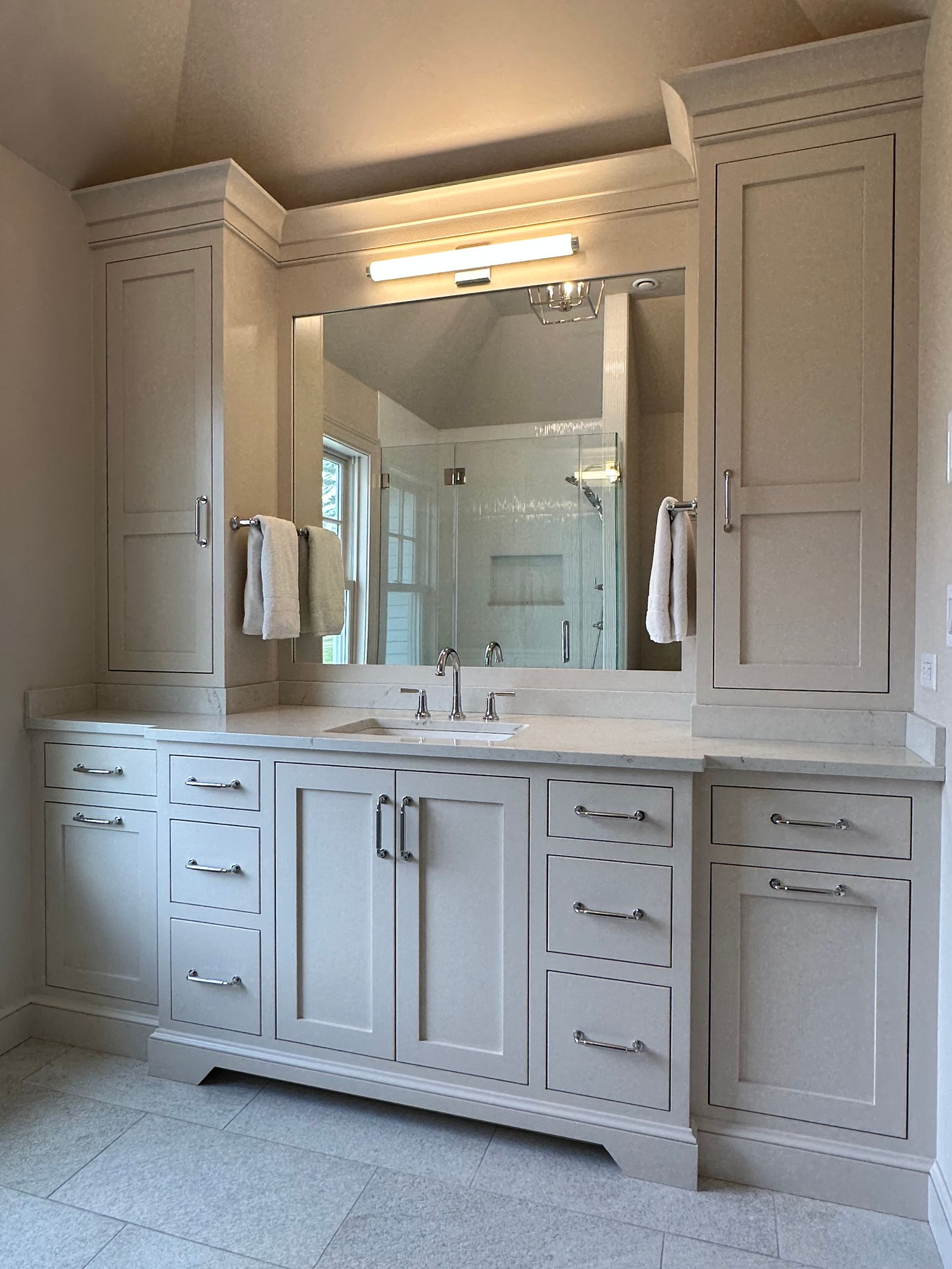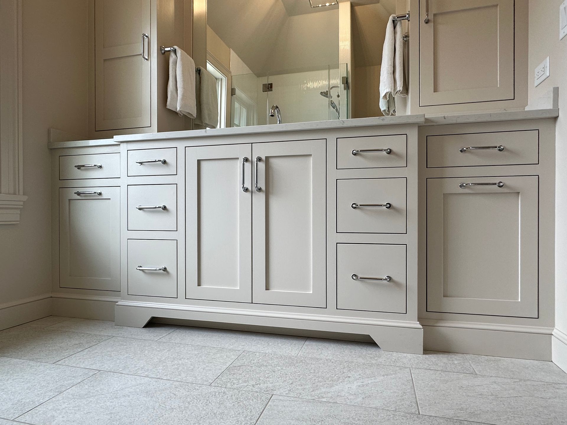 Bathroom projects are approached with a focus on function, proportion, and long-term performance. Each space is designed for comfort and usability. Custom designed cabinetry and showers enhance the overall user experience. Textures and colors are integrated to create a cohesive and balanced result. Construction is executed to a high standard of precision, durability, and clean detailing throughout.